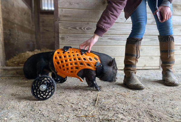 這頭名叫Hero的小豬原先生活在弗吉尼亞州,兩條后腿被凍傷危及生命,休斯頓的動物保護者得知此事后對它進行了緊急治療,它兩條凍傷的后腿也被截取,換上了假肢。